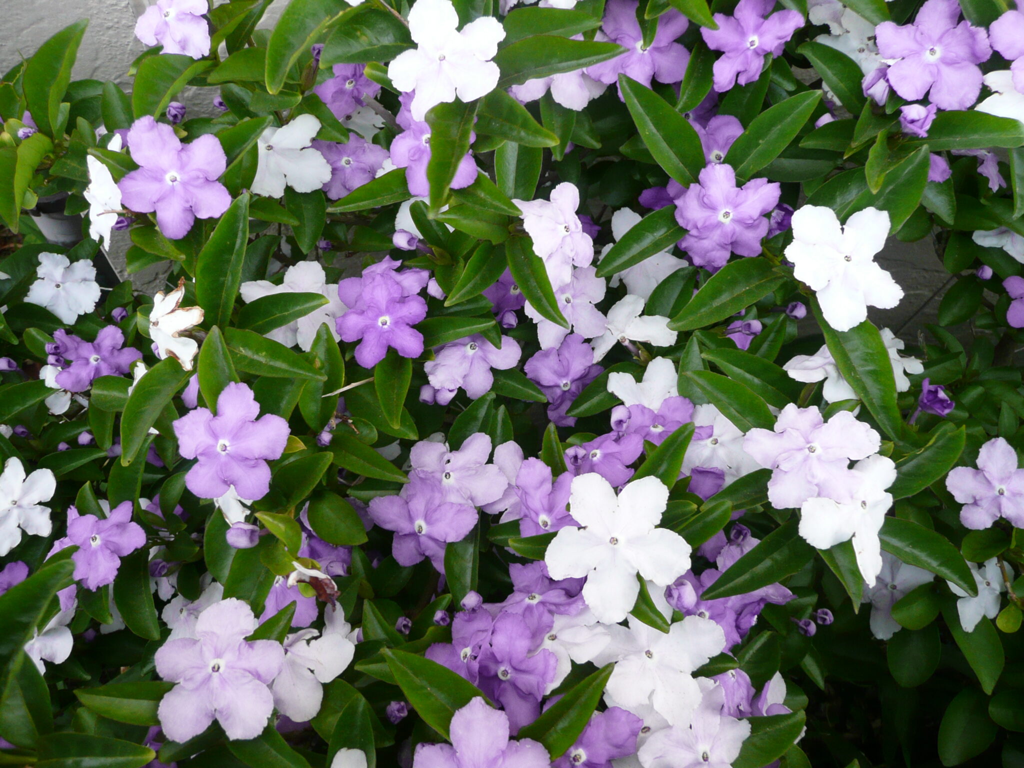 ニオイバンマツリは、花の色が紫から薄紫、白へと変わり、ジャスミンのようなよい香りがする木です。自宅の庭の一番目立つところに植えられていていました。とても気に入っていた木でしたが、2012年に原因はわかりませんが枯れてしまいました。